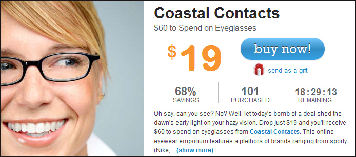 There’s a secret hidden treasure on Living Social! You’ll be able to snatch up $60.00 worth of glasses or contacts at Coastal Contact for $19.00 Here’s how: